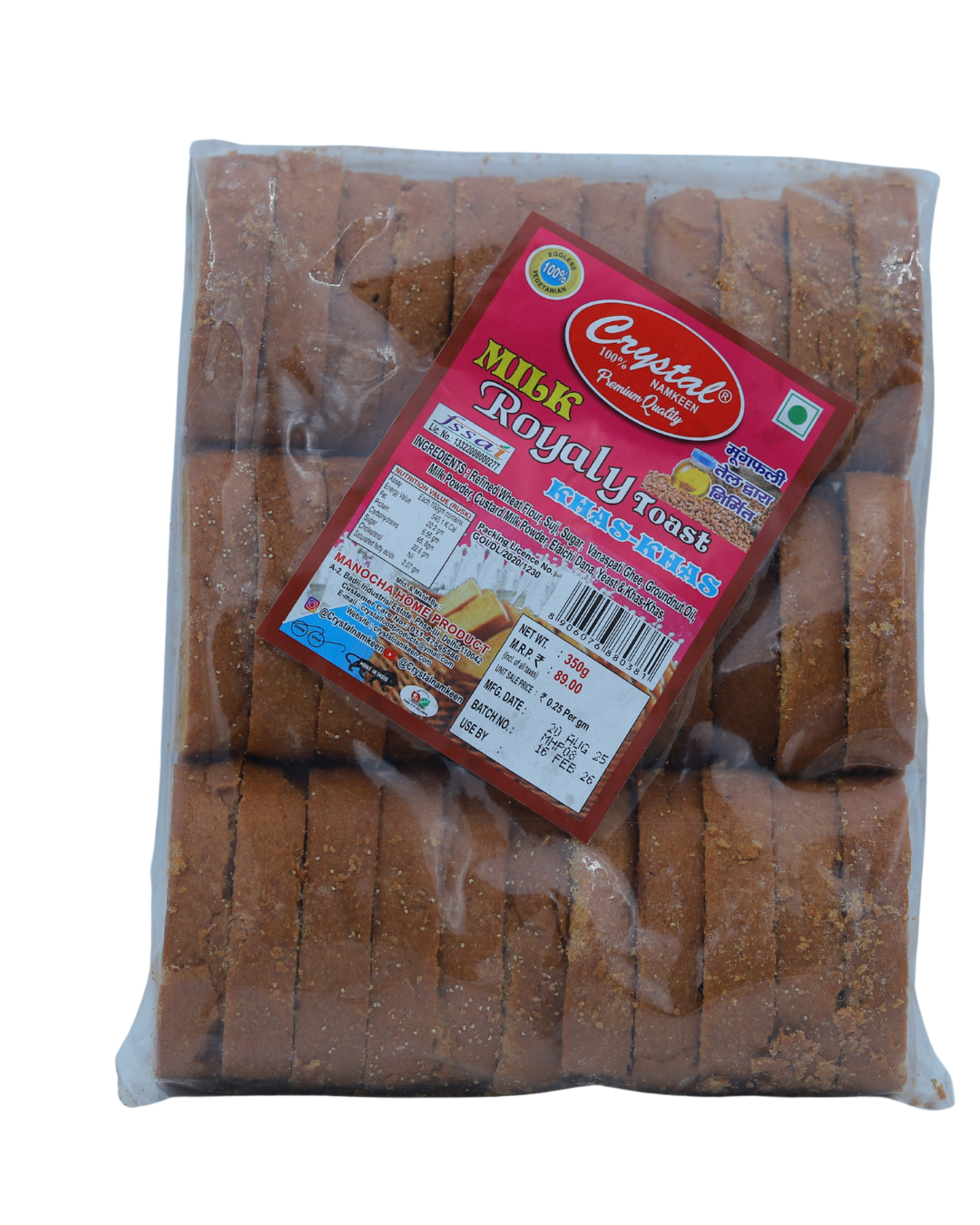Indulge in the perfect tea-time companion — Milk Royalty Toast from Crystal Namkeen. Each slice is baked to golden perfection, offering a crunchy, melt-in-the-mouth texture with smooth, comforting milky flavor. Ideal for pairing with your morning coffee or evening chai — wholesome, crunchy, and satisfying with every bite.